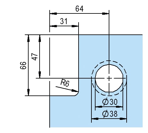 Zum bündigen Abschluss mit dem Beschlag ist im Glasausschnitt ein Abzugsmaß von 16 mm berücksichtigt. Um die Dichtung BO 5213494 einzusetzen, muss der Glasausschnitt angepasst werden.