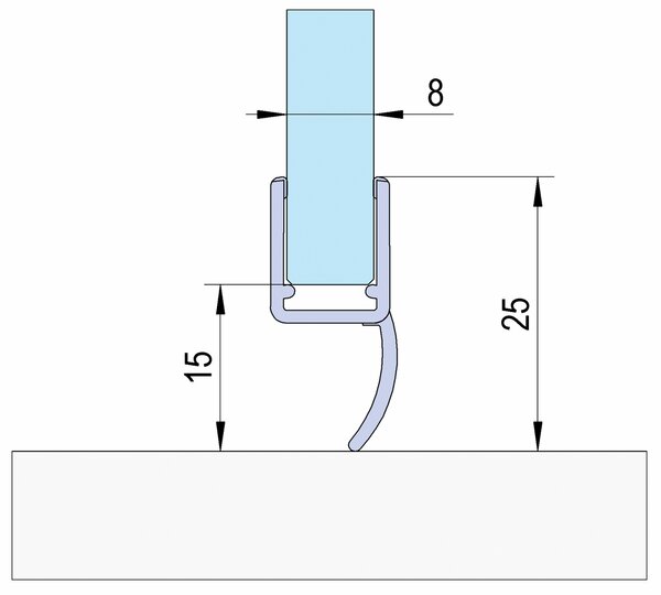 Duschtürdichtungen mit einfacher Dichtlippe eignen sich sowohl für die Bandseite als auch für die Unterseite und kommen sowohl bei Anschlag- als auch bei Pendeltüren zum Einsatz. Die Dichtung wird einfach auf die Glaskante aufgesteckt.