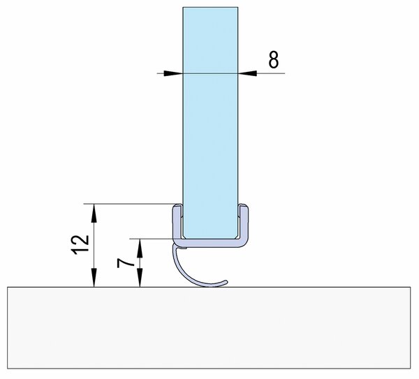 Duschtürdichtungen mit offener Dichtlippe eignen sich sowohl für die Griffseite als auch für die Bandseite und kommen aufgrund ihrer asymmetrischen Form insbesondere bei Anschlagtüren zum Einsatz. Die Dichtung wird einfach auf die Glaskante aufgesteckt.