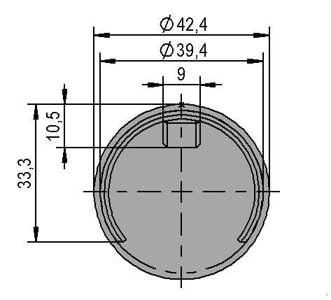 Diese Endkappe ermöglicht einen sauberen Abschluss des Ø42,4 mm Nutrohr-Handlaufs.