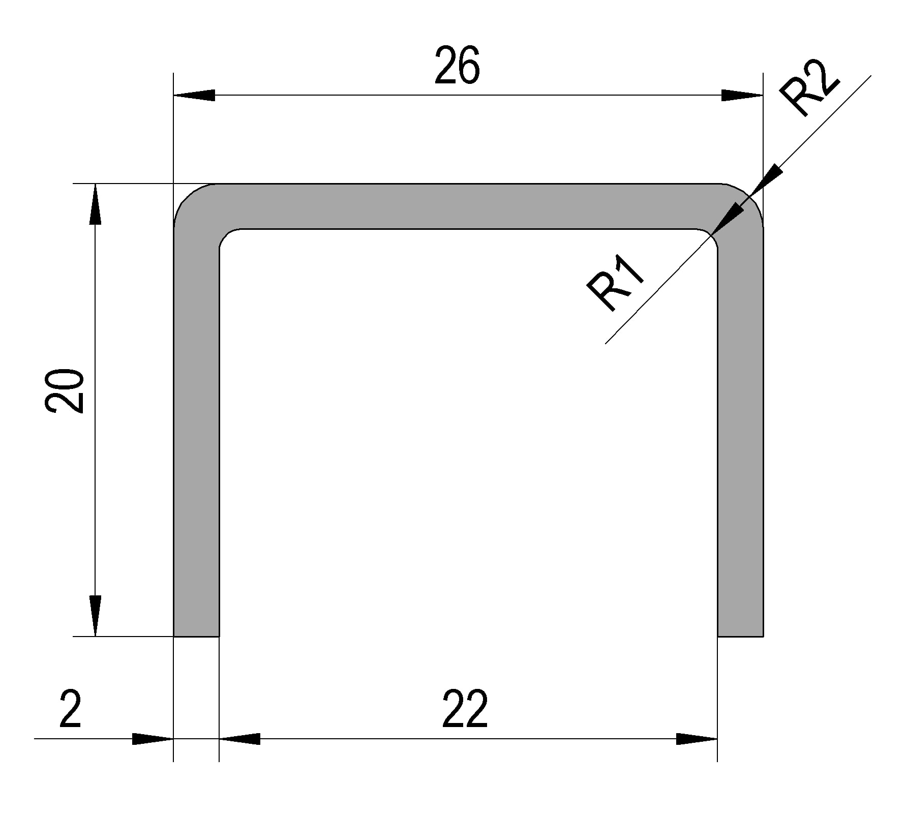 Handlauf eckig 26 x 20 mm