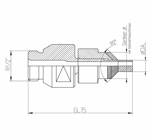 Der Industrie-Diamanthohlbohrer mit Tiefsenker “Made in Germany” weist neben den besonders verschleißfesten Diamantwerkstoffkombinationen eine aufwändig gearbeitete Geometrie von Diamantkrone- und Senkring mit erodierten Segmenten, Kühlkanälen, Schlitzen und Bohrungen auf.