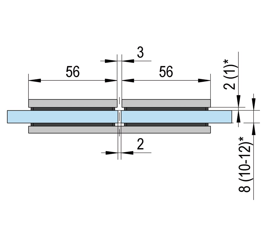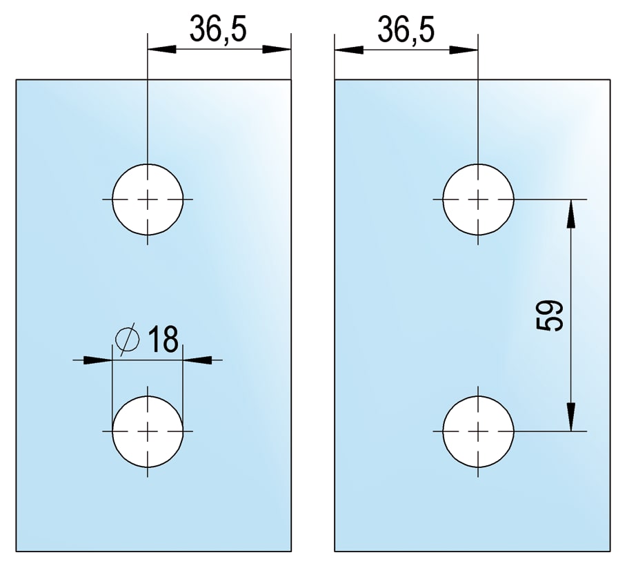 Die 180° Glas-Glas Bilbao Längsverbinder ermöglichen die Montage breiter Glasfronten, wenn ein einteiliger Aufbau aus Platz- oder Gewichtsgründen nicht möglich ist. Es sind lediglich Glasbohrungen erforderlich.