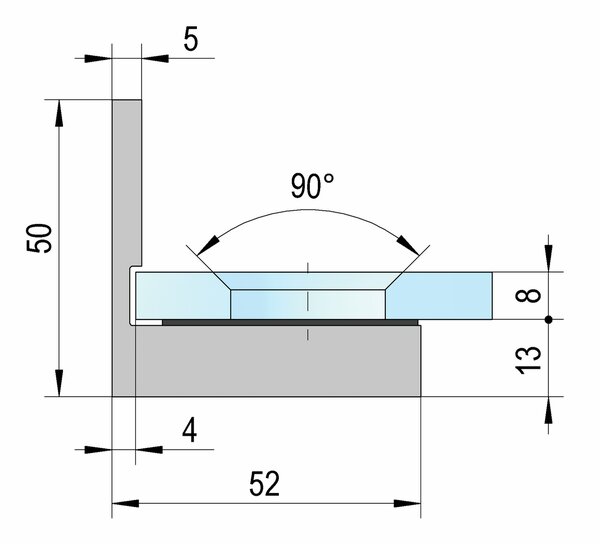 Lugo FM Winkelverbinder 90° Glas-Wand zum Verbinden eines feststehenden Glasseitenteiles mit einer Wand.