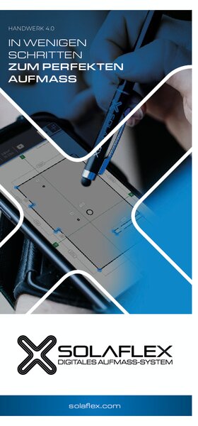 Das digitale Aufmaß-System Solaflex ist eine bahnbrechende Lösung für Handwerker, die auf der Baustelle präzise und effiziente Messungen benötigen. Dank innovativer Technologien wie digitalen Rollmeter und / oder Laser-Entfernungsmesser werden Ihre Aufmaßdaten in Echtzeit direkt in die Solaflex App übertragen – einfach, fehlerfrei und effizient.