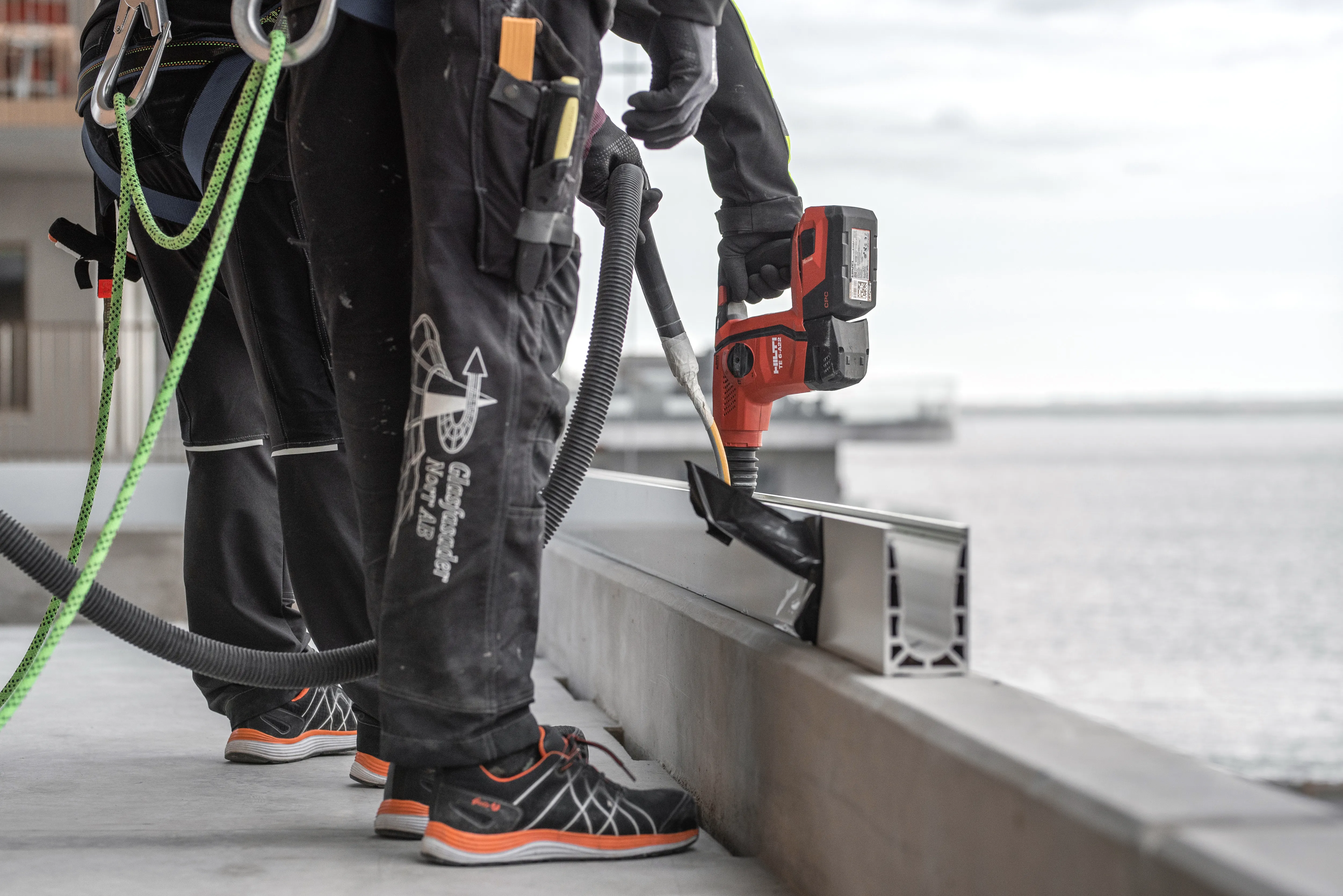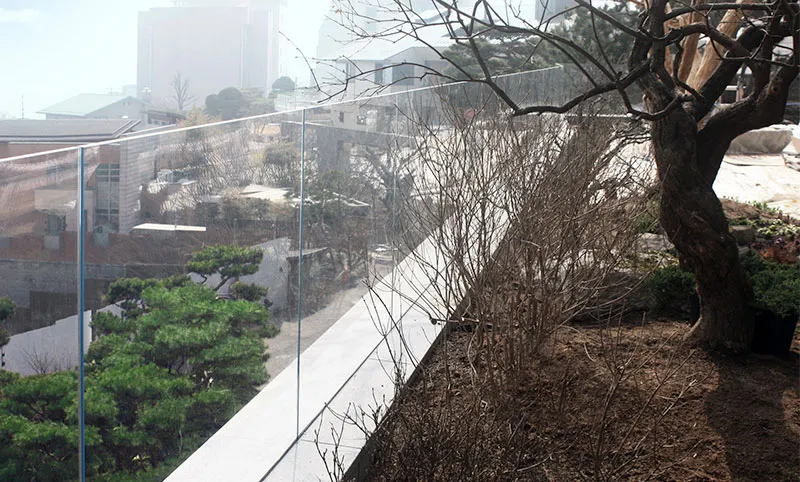 In Seoul ist VetroMount® von unserem Geschäftspartner Linit Korea auf der Dachterrasse eines Wolkenkratzers verbaut. Umrandet wurde sowohl die Gebäudekante als auch der innere Luftschacht mit 95 Metern Bodenprofil U.