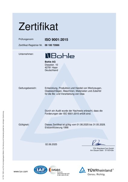 Wir legen größten Wert auf Qualität und die kontinuierliche Verbesserung. Wir lassen diese Standards regelmäßig durch den TÜV nach den Anforderungen der ISO 9001:2015 überprüfen und sind seit 1998 nach ISO 9001 zertifiziert.