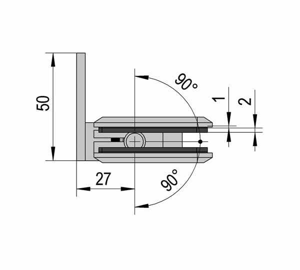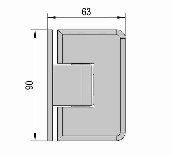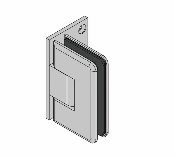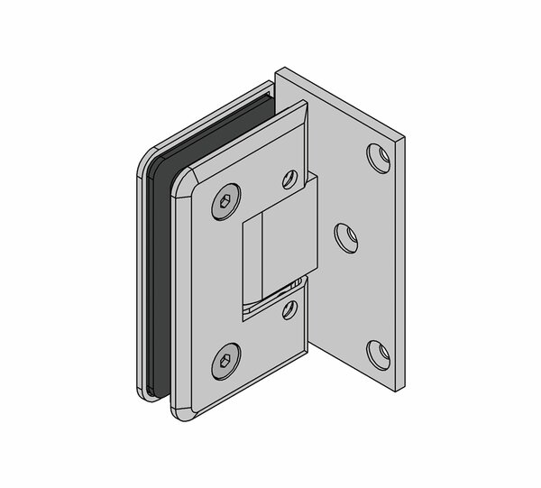 The Barcelona Select glass-wall 90° swing shower door hinge has a load-bearing capacity of 40 kg. Doors up to 1 x 2 m can be realised. The 90° glass-wall assembly with glass connection on one side enables a glass door to be mounted on a wall
