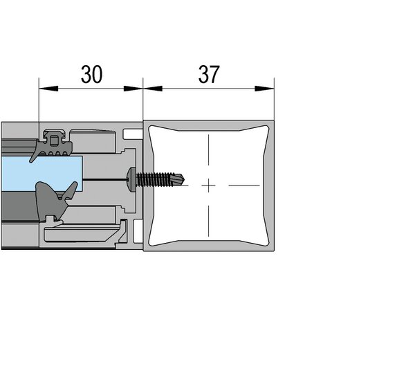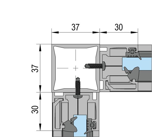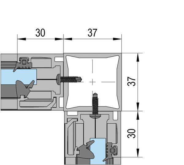 In addition, systems can be guided in all four directions at the same time or stopped precisely in the middle of the room and finished cleanly. Installation is straightforward using self-tapping screws. The system can be flexibly connected to both glazing profiles and frame profiles. This facilitates integration into a wide variety of structural conditions. A particular advantage is that all four sides of the multifunctional profile can be used equally as either the installation side or the visible side. This ensures a clean, high-quality finish every time, regardless of the installation situation.