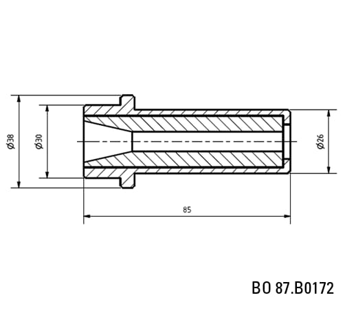 The sandblasting nozzle is mainly used as an injector nozzle with an injector blasting head in blasting booths and automated systems. However, it can also be used as a pressure blasting nozzle in conjunction with a nozzle holder on a blasting pot. As the third hardest material after diamond and CBN (cubic boron nitride), boron carbide is ideally suited for blast nozzles for the use of highly abrasive blasting media such as corundum, silicon carbide and aluminium oxide. It is recommended to always use the sandblasting nozzle together with an attachment nozzle. This is also necessary when used in conjunction with most blasting heads or nozzle holders. With its large funnel shape, the attachment nozzle ensures an ideal abrasive flow for optimum performance of the blasting system.