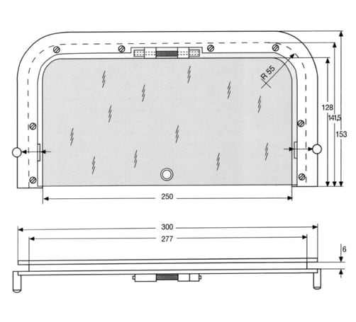 Üvegkivágás: 143 x 280 mm
