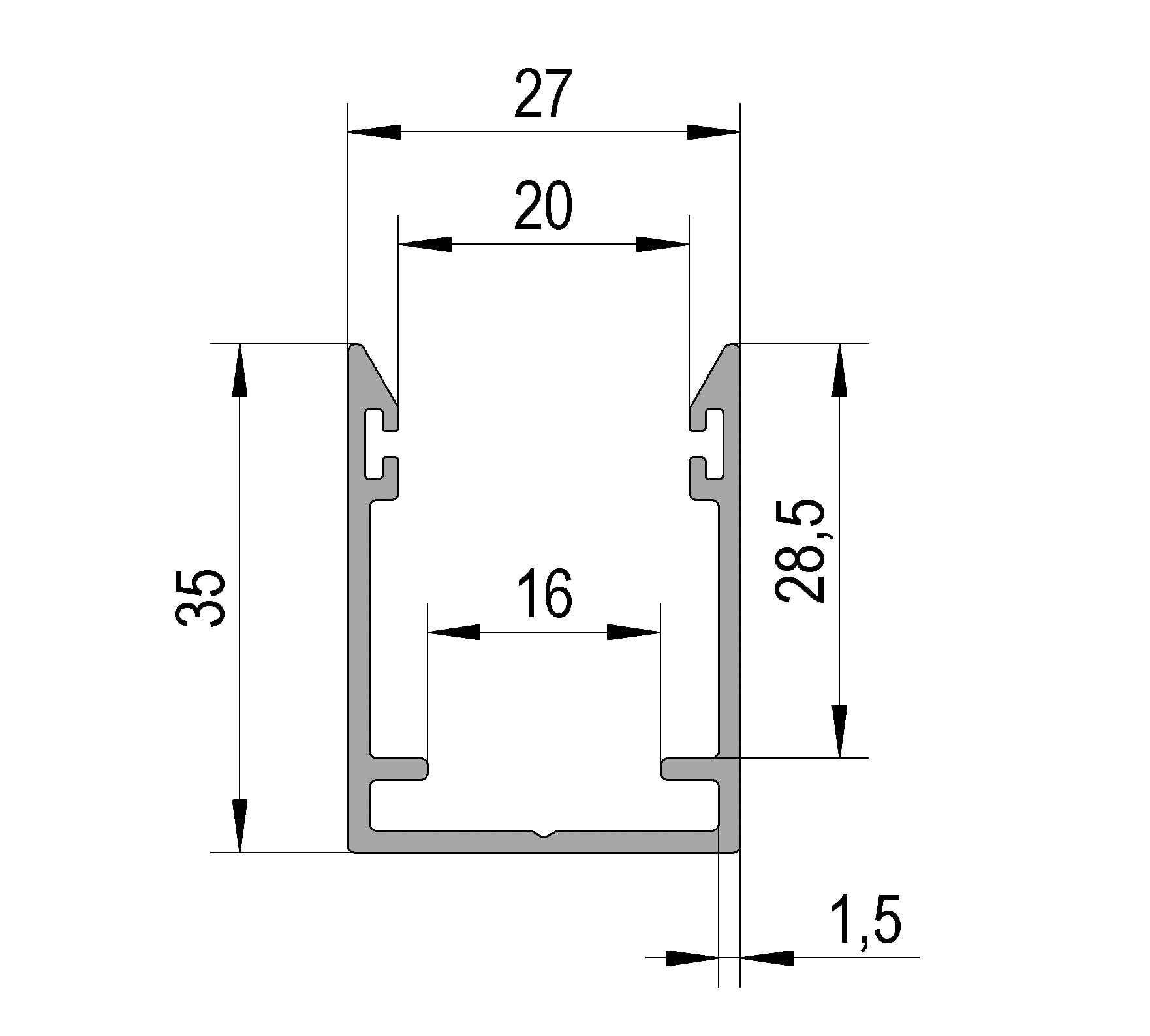 A FloorTrack falprofil behúzott kefés tömítésekkel a külső ajtószárnyak zörgésmentes oldalirányú behúzását teszi lehetővé. Pótlólagosan az ajtók bezárásához a falprofilba ellenlemez is beépíthető.