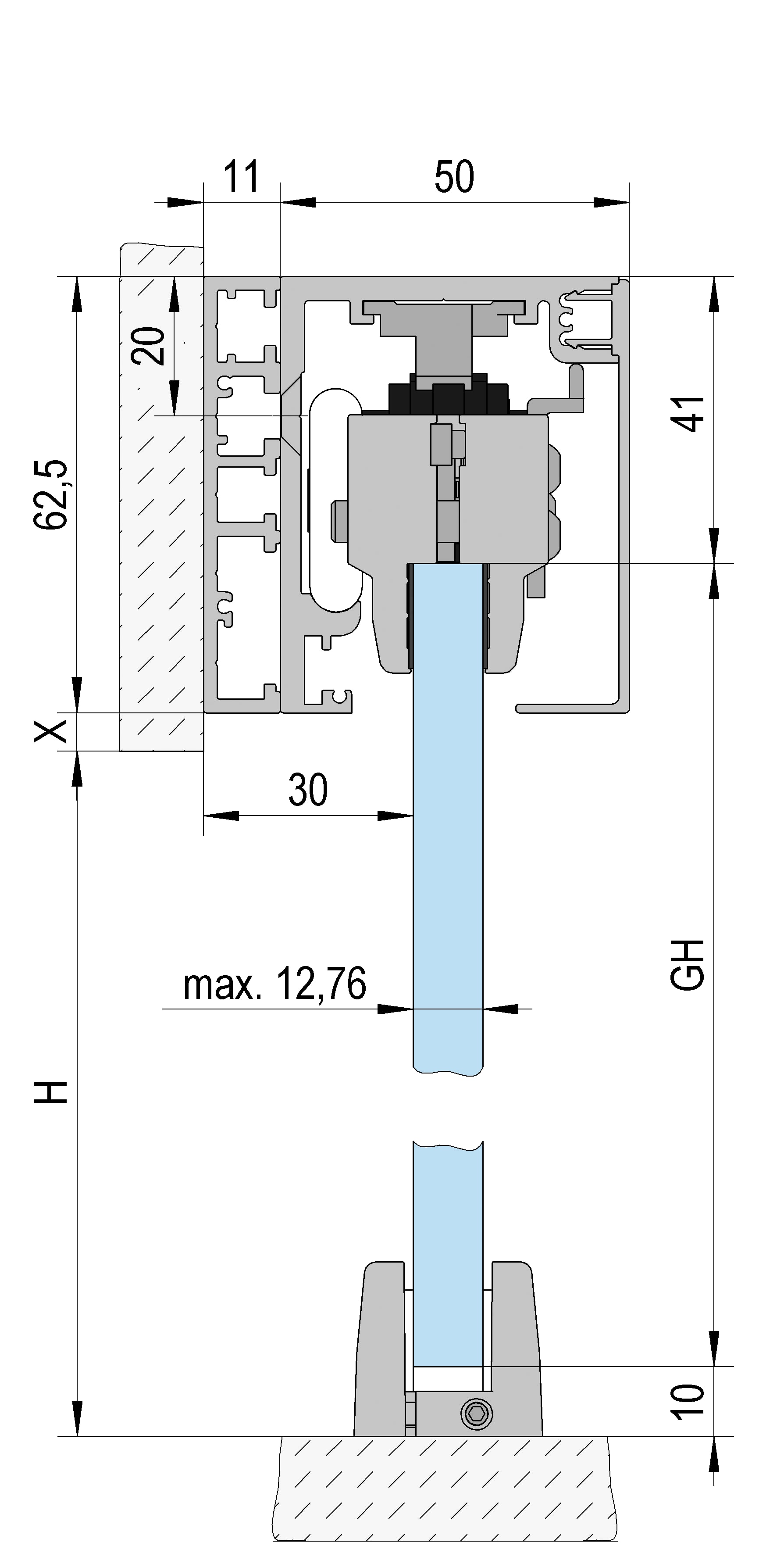 A profilhoz kérjük pótlólagosan az adott alkalmazástól és a profil hosszától függően rendelje meg a BO 5700007 vagy BO 5700008 tartozékkészletet a megfelelő mennyiségben.