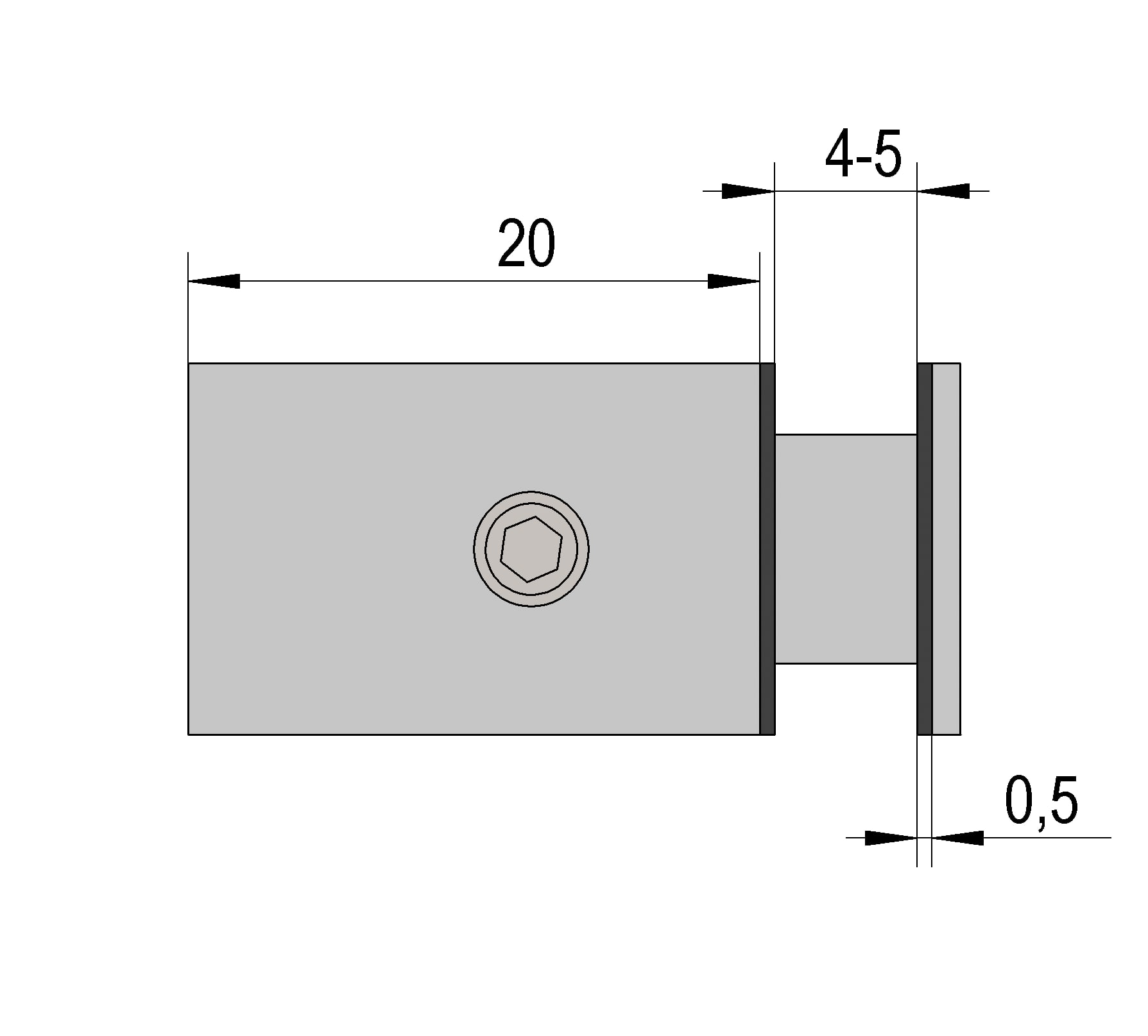 A ø = 13 x 20 mm-es, lapos fejű kisméretű pont-táblatartó tömör rozsdamentes acélból készült, és biztonságos tartást biztosít a kisebb üveglapoknak és tábláknak.