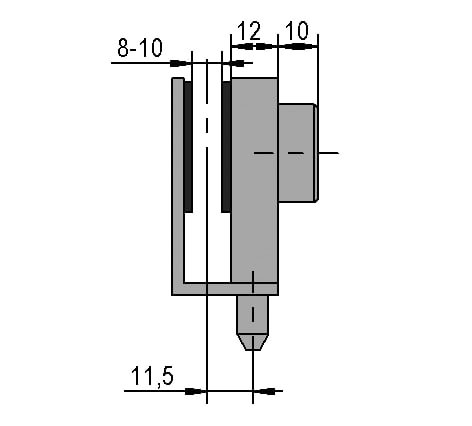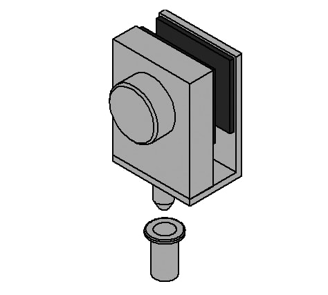 A túltolás elleni fixáló kétszárnyú üvegajtók szárnyának fixen tartására szolgál. Felszerelése az üveg megmunkálása nélkül az ajtószárnyra történő felcsúsztatással történik. A szállítási terjedelem tartalmazza a padlóba történő rögzítéshez szükséges nikkelezett padlóhüvelyt.