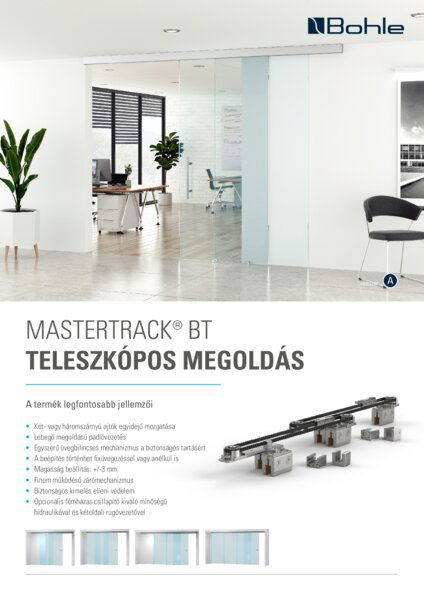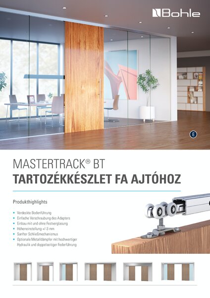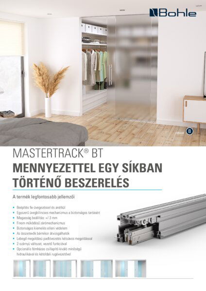 Ez a helyzet a MasterTrack® csúcstechnológiás megoldásaival is. A rendszer igényes megjelenését a kifinomult tolóajtós technológia egészíti ki. A rendszer három komponensből áll: sín, görgőrendszer és rögzítő mechanizmus, amely különösen egyszerűvé teszi mind a beszerelést, mind a későbbi használatot.