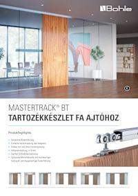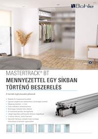Ez a helyzet a MasterTrack® csúcstechnológiás megoldásaival is. A rendszer igényes megjelenését a kifinomult tolóajtós technológia egészíti ki. A rendszer három komponensből áll: sín, görgőrendszer és rögzítő mechanizmus, amely különösen egyszerűvé teszi mind a beszerelést, mind a későbbi használatot.