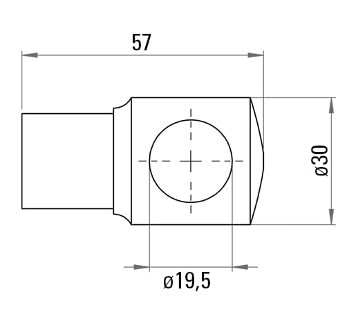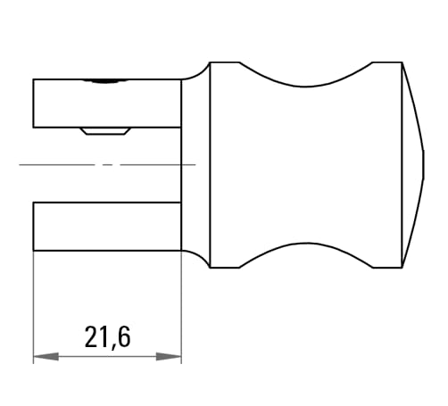 Glasverbinding met opening voor het schuiven op een stabilisatiestang. Deze wordt geklemd op de bovenrand van het vaste glazen zijpaneel, kan vrij worden gepositioneerd over de lengte van de stabilisatiestang en is traploos in hoek verstelbaar.