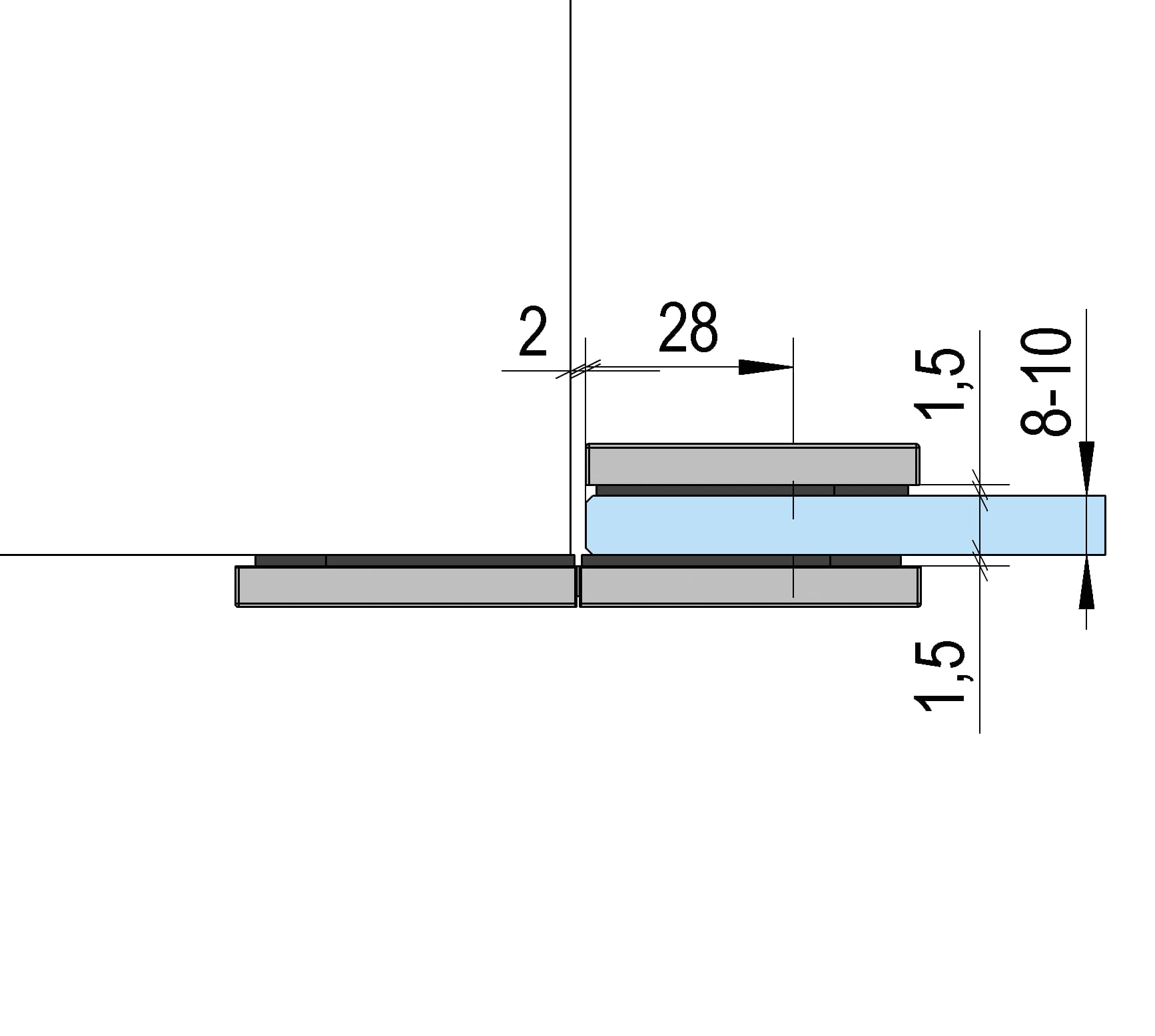 Juna® douchedeurscharnieren maken in principe ook profielloze montage mogelijk. Door het gebruik van afdichtingsprofielen wordt waterverlies echter tot een minimum beperkt. Deze moeten worden onderbroken in het scharniergebied.