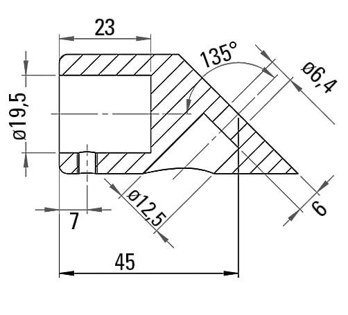 45° wandaansluiting om de stabilisatiestang Ronde 19 met een vaste wand te verbinden.
