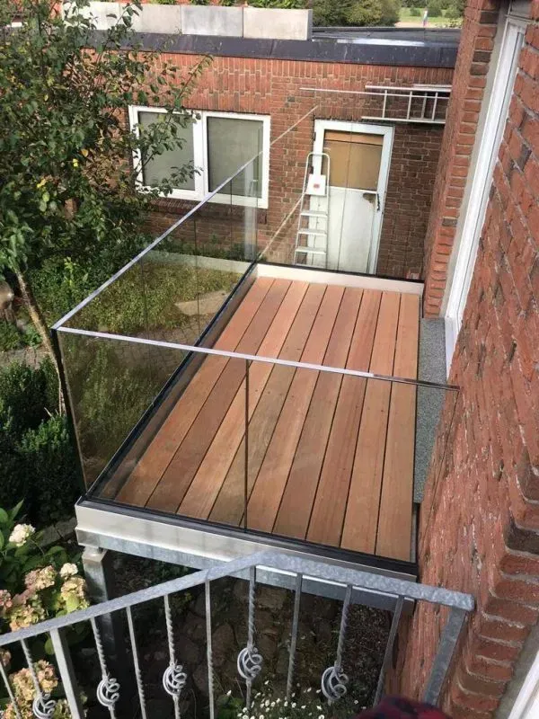 Small but mighty. This beautiful terrace invites you to linger and shows how elegantly even small areas can be staged with a glass balustrade. Installed by Glaszentrum Nord GmbH.