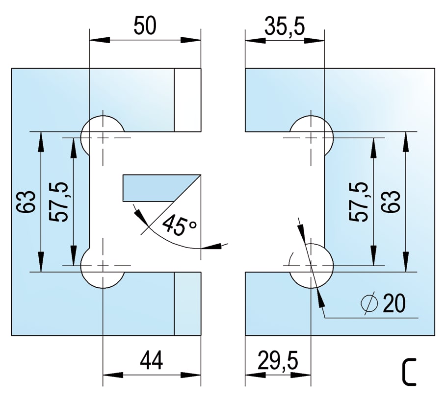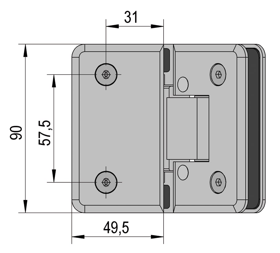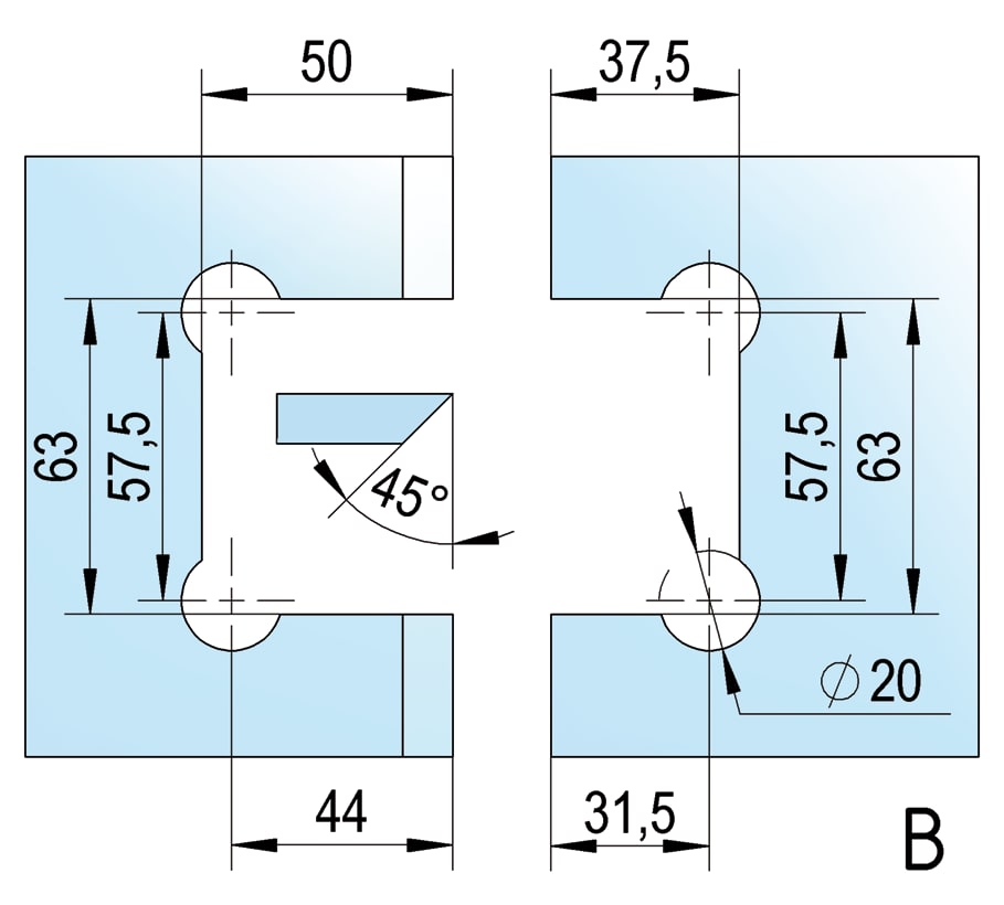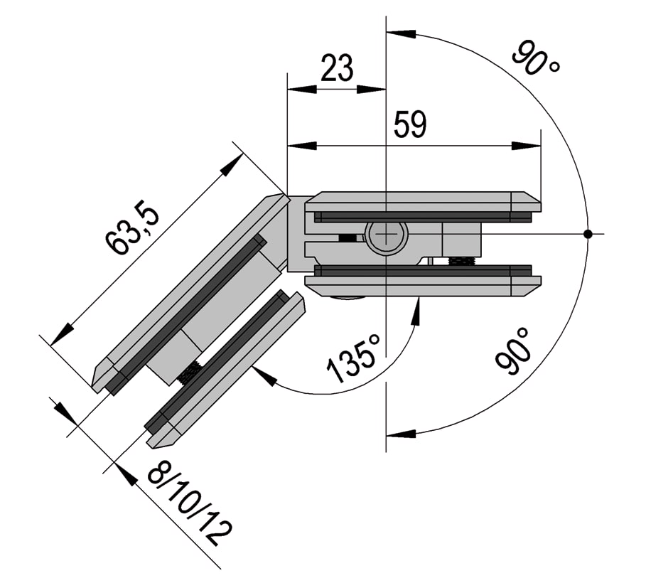 Das Pendelduschtürband Barcelona Select Glas-Glas 135° hat eine Tragkraft von 40 kg. Es lassen sich Türen bis zu 1 x 2 m realisieren. Das Band für die 135° Glas-Glas Montage ist zum Beispiel für die moderne und platzsparende, fünfeckige Dusche konzipiert.
