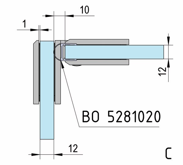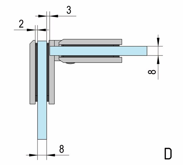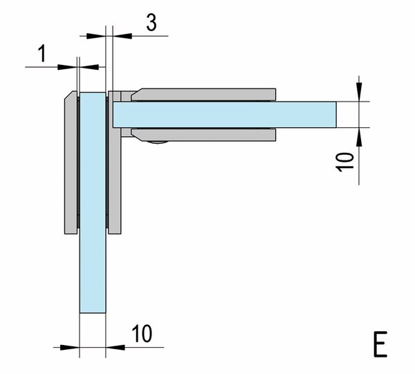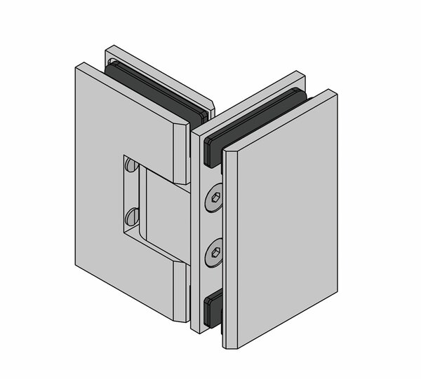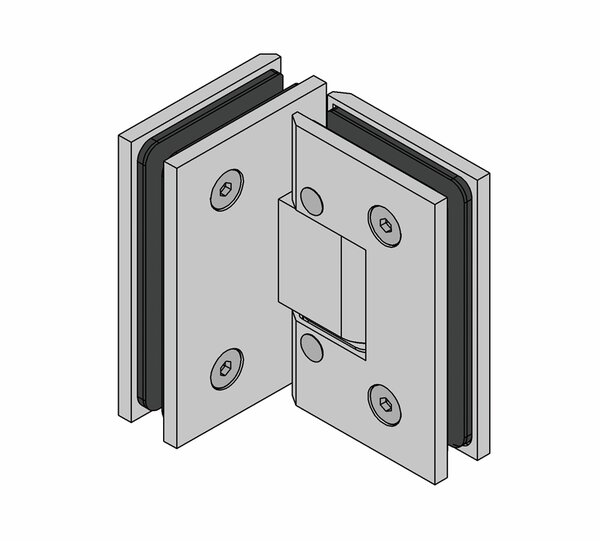 Das Pendelduschtürband Bilbao Select Glas-Glas 90° hat eine Tragkraft von 40 kg. Es lassen sich Türen bis zu max. 1 x 2 m realisieren. Das Band für die 90° Glas-Glas Montage ist für die Anbringung einer Tür an ein feststehendes Glasseitenteil konzipiert.