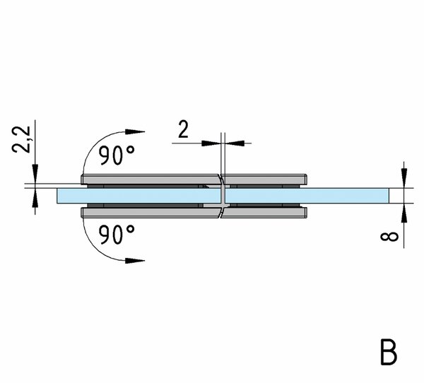 Das Pendelduschtürband Juna® Glas-Glas 180° hat eine Tragkraft von 50 kg. Es lassen sich Türen bis zu 1 x 2,25 m realisieren. Das Band für die 180° Glas-Glas Montage ist für moderne, große Duschräume aus Glas entwickelt worden.