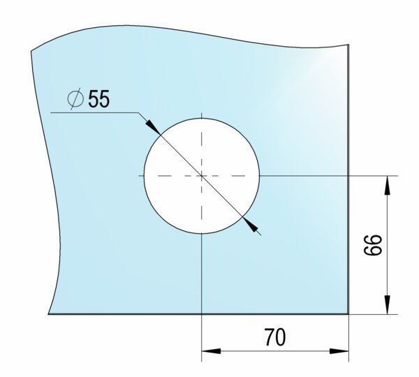 Zur Montage ist eine Bohrung im Glas erforderlich. Bitte nutzen Sie folgende Einlagenkombinationen bei nachfolgenden Glasstärken: 2 x 2+1 mm für 8 mm Glas, 2 x 2 mm für 10 mm Glas, 2 x 1 mm für 12 mm Glas.