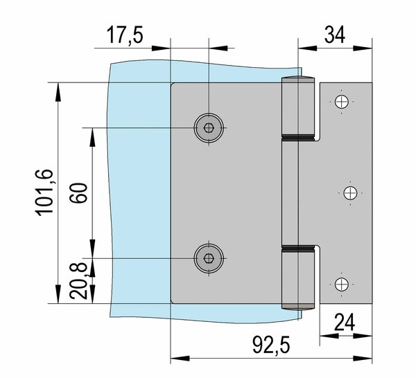 Bei der Verwendung der Türbänder mit VSG empfehlen wir Gläser mit druckneutraler Folie und eine zusätzliche Verklebung der Türbänder.