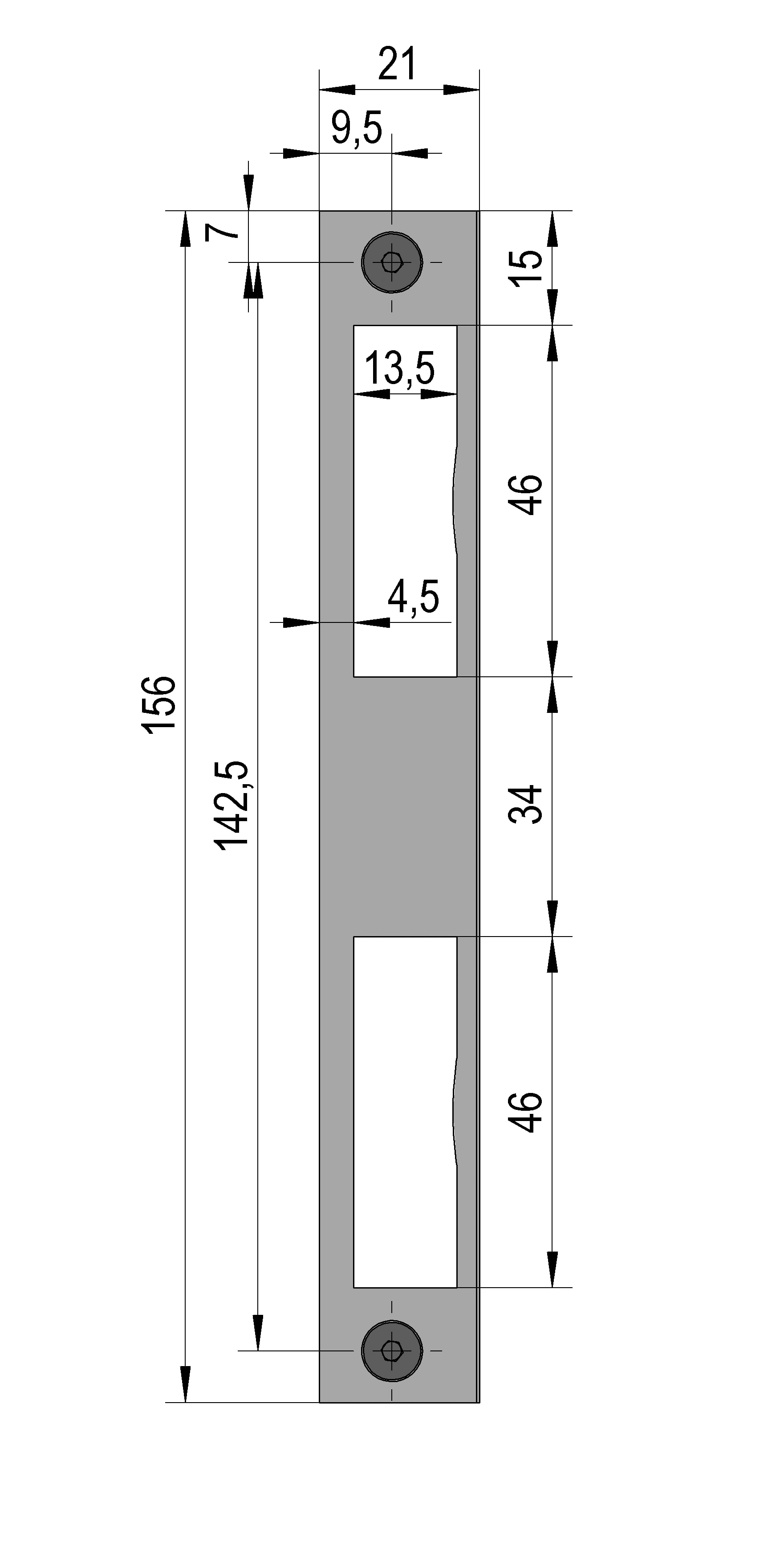 (  ) Edelstahlschließblech für Zargenfalz mit Aussparung für Falle und Riegel · BO 5220743N
