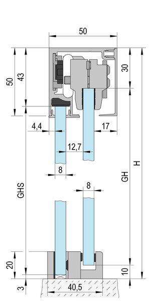 Zur Befestigung der Laufschiene an einer Festverglasung (einseitige Ecklösung) bitte das Glasmontage-Set separat bestellen: BO 5700045 / BO 5700046 / BO 5700061. Optionale Einzugsdämpfung BO 5700051 und optionalen Schwallschutz bitte ebenfalls separat bestellen: BO 5700052 / BO 5700053 / BO 5700063.