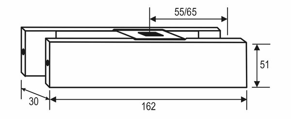 Der Eckbeschlag PT 20 verfügt über einen Kunststoffeinsatz für einen Bolzen Ø 15 mm, passend zum Deckendrehpunkt PT 24 und Oberlichtbeschlägen. Der Drehpunkt kann auf 55 oder 65 mm eingestellt werden