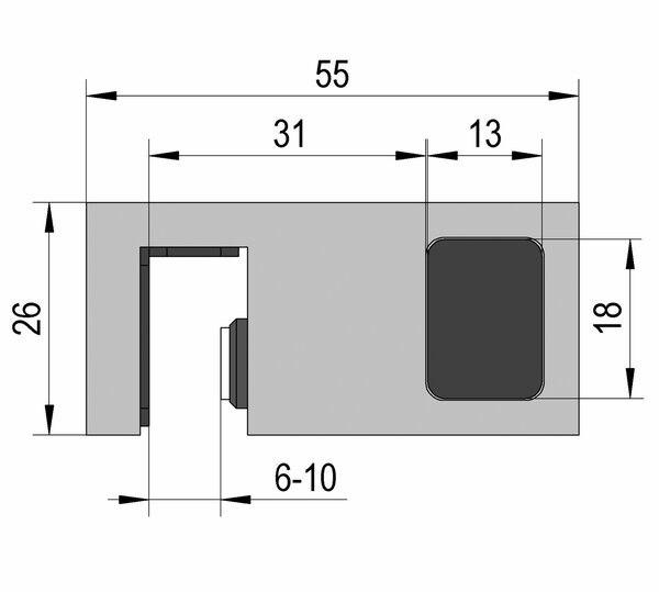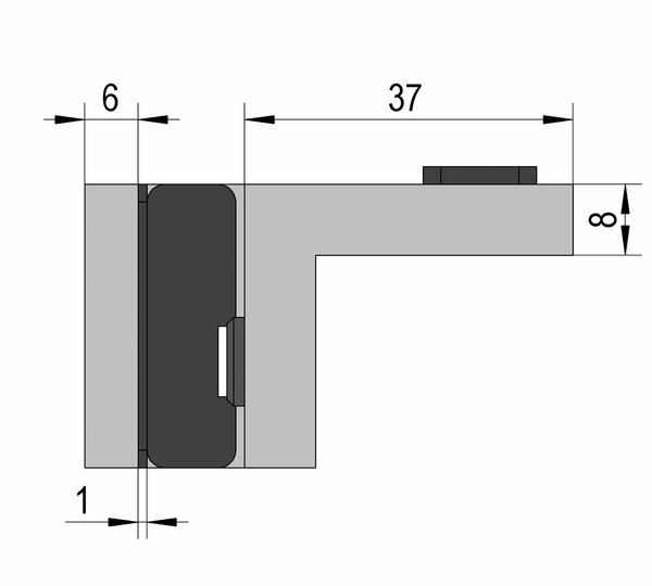 Eine Anpassung an unterschiedliche Glasstärken erfolgt hier nicht über unterschiedlich dicke Anschlagpuffer, sondern über die Veränderung der Montageposition auf dem Seitenteil.
