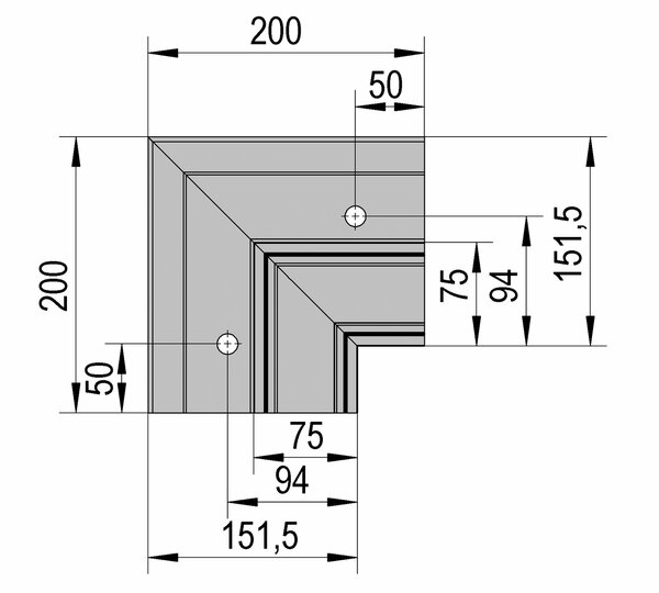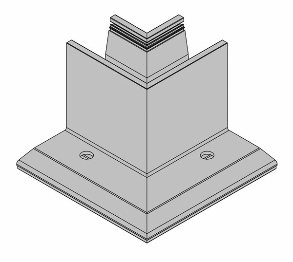 Die vorgefertigte Ecke für das VetroMount® Bodenprofil F ermöglicht eine passgenaue 90° Eckverbindung des Grundprofils, ohne dass Gehrungsschnitte vorgenommen werden müssen. Das Eckstück lässt sich mithilfe der VetroMount® Verbindungsstifte einfach an die angrenzenden Profilabschnitte anschließen.