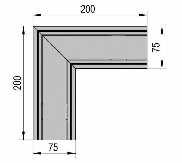 Die vorgefertigte Ecke für das VetroMount® Seitenprofil U ermöglicht eine passgenaue 90° Eckverbindung des Grundprofils, ohne dass Gehrungsschnitte vorgenommen werden müssen. Das Eckstück lässt sich mithilfe der VetroMount® Verbindungsstifte einfach an die angrenzenden Profilabschnitte anschließen.
