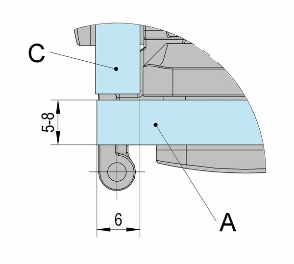 Je nach Glasdicke kann eine Fase an der Glaskante vorzusehen sein. Bitte Montageanleitung beachten.