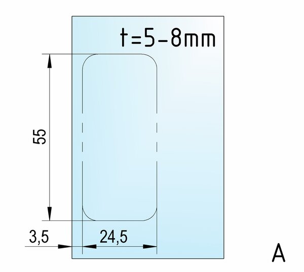 Je nach Glasdicke kann eine Fase an der Glaskante vorzusehen sein. Bitte Montageanleitung beachten.