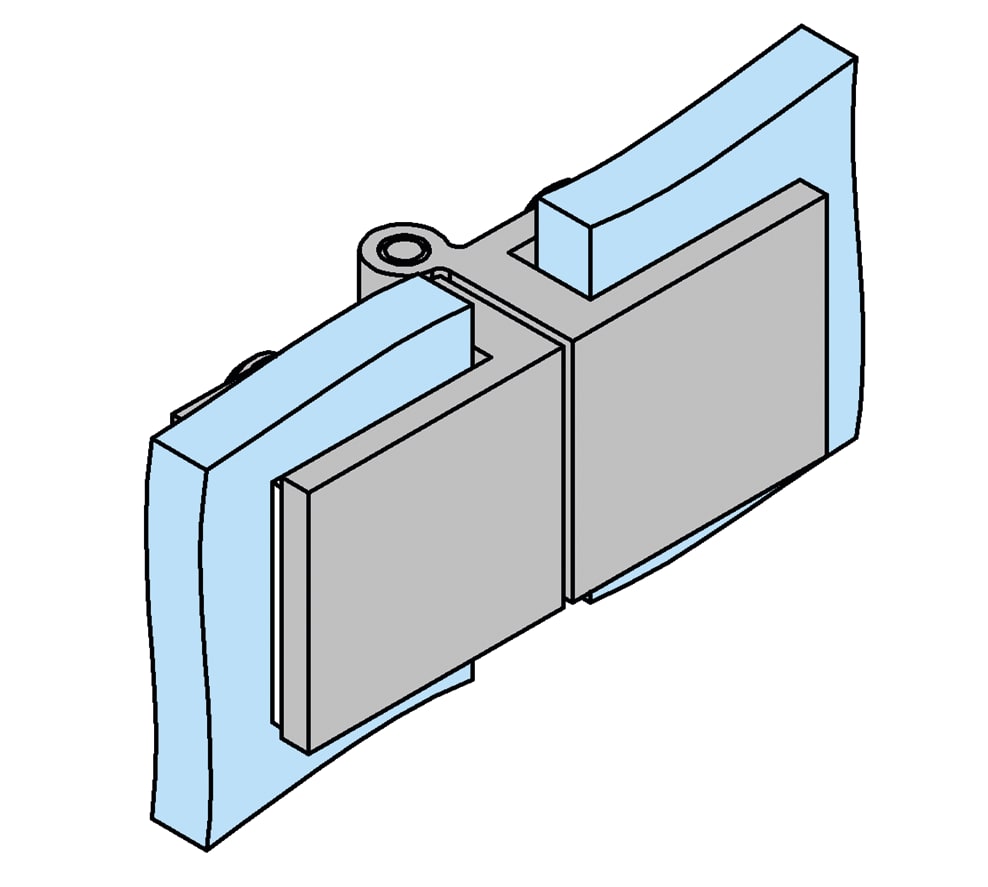 Vitreasy Möbelbänder Glas-Glas zur einfachen Befestigung von Glastüren an Glasseitenteilen beispielsweise von Ganzglasvitrinen. Erhältlich in verschiedenen Größen sowie mit und ohne Glasbearbeitung.