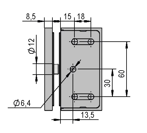 Avila Winkelverbinder 90° Glas-Wand zum Verbinden eines feststehenden Glasseitenteiles mit einer Wand. Hierbei sind lediglich einfache Glasbohrungen in den Glasscheiben erforderlich.