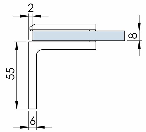 Bilbao Premium Winkelverbinder 90° Glas-Wand zum Verbinden eines feststehenden Glasseitenteiles mit einer Wand. Hierbei sind lediglich einfache Glasbohrungen in den Glasscheiben erforderlich.