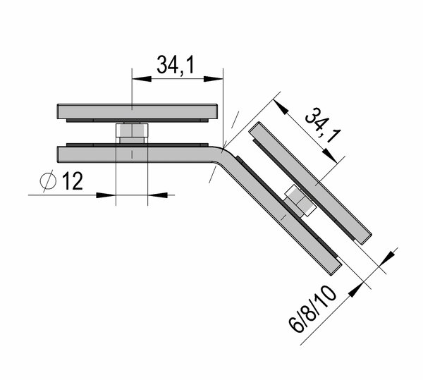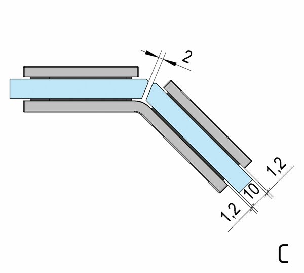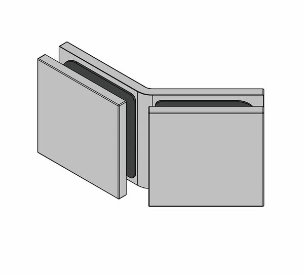 Die 135° Glas-Glas Juna® Winkelverbinder ermöglichen die Herstellung einer 135° Glas-Eckverbindung, beispielsweise für platzsparende Fünfeck-Duschen.