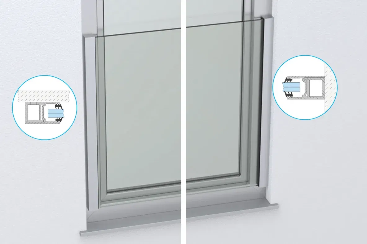 Mit lediglich 4 Befestigungspunkten auf jeder Seite geht die Montage zeitsparend von der Hand. Höchste Planungssicherheit garantiert die Typenstatik. Lyon ist in den Oberflächen Aluminiumfarben, Weiß und Anthrazit erhältlich. Weitere Oberflächen gibt es auf Anfrage. Lyon steht als Set in den Höhen 900, 1000 und 1100 mm zur Verfügung. Ein selbstklebender Kantenschutz aus Edelstahl ist optional verfügbar.