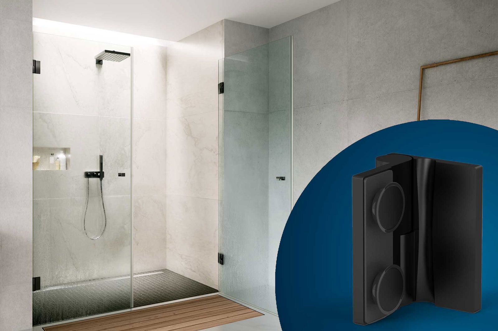 Ein Anschlags-Duschtürband ermöglicht das Öffnen der Tür nur in eine feste Richtung – entweder nach innen oder nach außen. Diese kontrollierte Führung gewährleistet eine stabile Schließposition und eine zuverlässige Abdichtung.