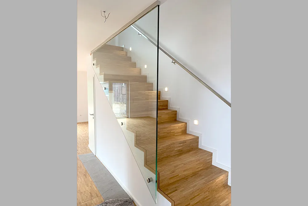 Kleine Punkthalter, große Wirkung. Hier steht das Glas und nicht der Beschlag im Mittelpunkt.