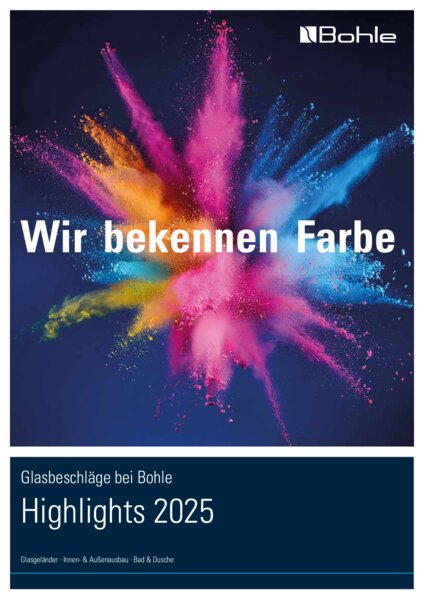 Wir verleihen Ganzglasgeländern, franz. Balkonen und Trennwandsystemen das perfekte Finish. Denn viele Bohle Beschläge können Sie ab sofort direkt pulverbeschichtet bei uns bestellen. Mit den farbigen Beschläge für den Innen- und Außenbereich erfüllen Sie Ihren Kunden jeden Wunsch nach Individualität. Schließlich wählen Sie aus der gesamten RAL-Palette und können einheitliche Looks kreieren, die zu vorhandenen Fensterrahmen, Haustüren und Co passen. Zusätzlich zu unserem Standard-Finish in mattem Glanzgrad bieten wir auf Anfrage auch glänzende oder feinstrukturierte Oberflächen an.