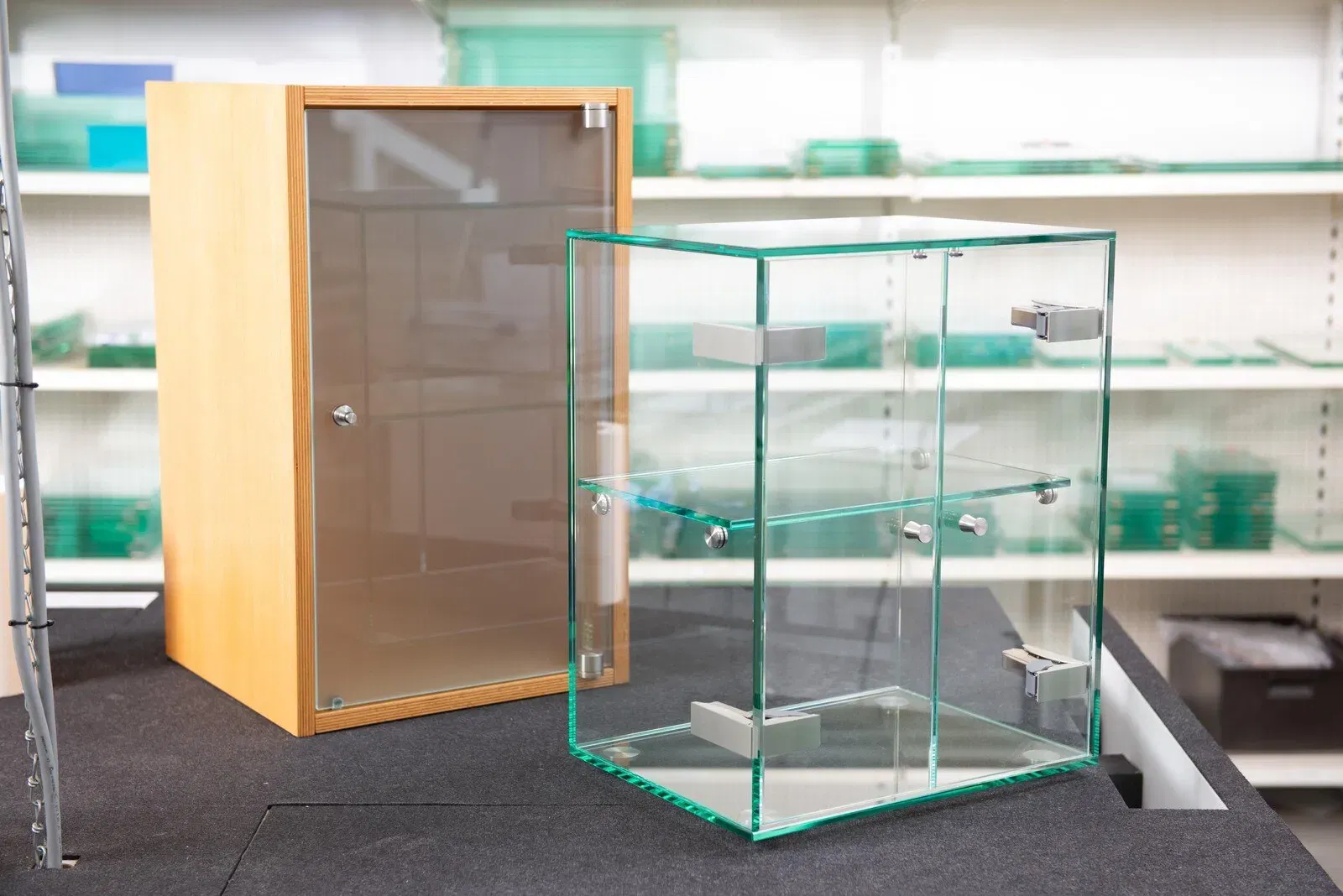 Wenn es große Objekte sind, empfehlen wir, diese vor der ersten Belastung gute 24 Stunden stehen zu lassen und erst dann auszuliefern. Wenn der Kleber ausgehärtet ist, dann ist er chemisch-stabil, er dunstet nicht aus und ist nicht mehr angreifbar. Das bedeutet, man kann ihn auch nicht lösen, die Verbindung bleibt bestehen“, so Schreibmaier. „Nur durch eine Temperatur ab 300 Grad Celsius wird der Kleber instabil und lässt sich lösen. Allerdings muss man sich vergewissern, ob das Glas diese Temperaturspannungen aushält. Passiert also ein Fehler, heißt es meist zurück an den Start.“