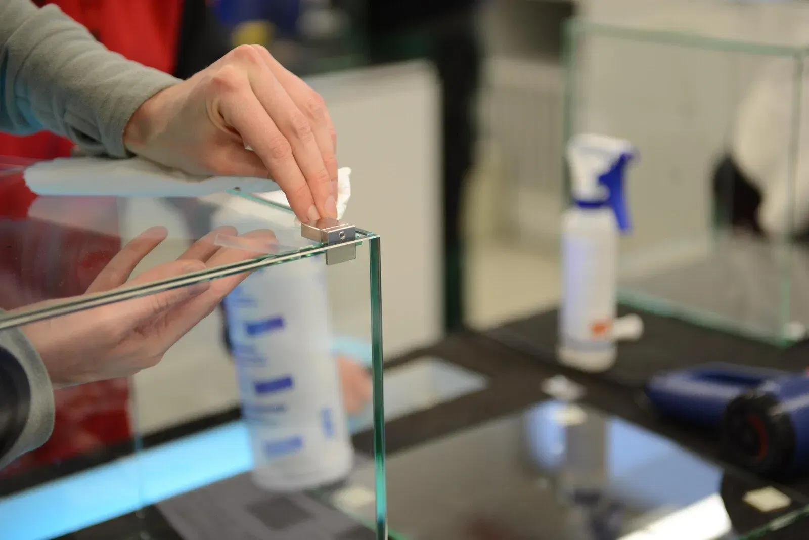 Essentiell beim Verkleben von Glas ist, dass keine Klebestellen sichtbar sind. Man spricht dabei von „glasklaren Verbindungen“. Die eigens dafür entwickelten Kleber sind mittlerweile nicht mehr nur transparent, sondern wirklich glasklar. Dadurch gibt es keine optische Beeinträchtigung an der Klebestelle, was natürlich einen sehr positiven Einfluss auf das Design hat.