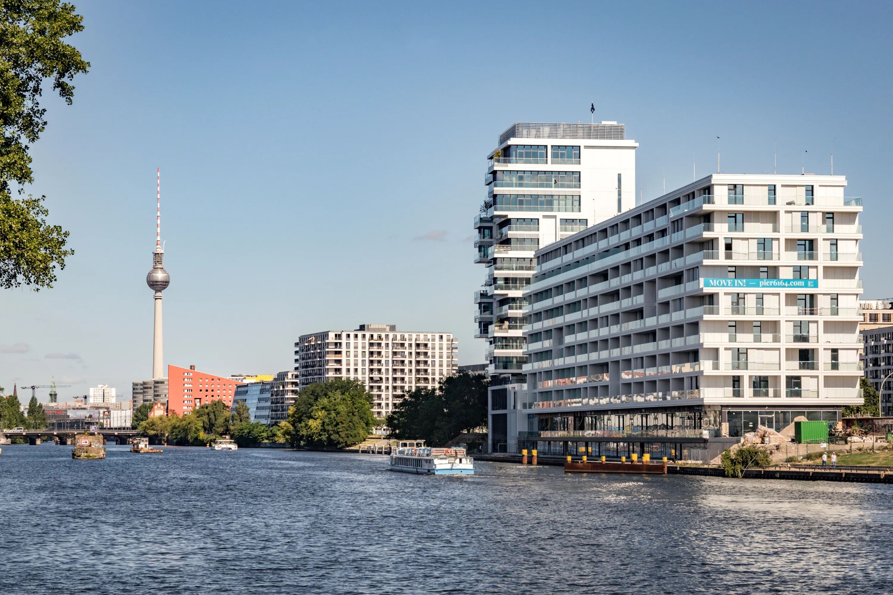 2.500 Meter VetroMount® Balustrade für grenzenlose Transparenz. Direkt an der Spree gelegen, bietet das Gebäude großartige Aussichten. Umsetzung durch Metallbau Möller.