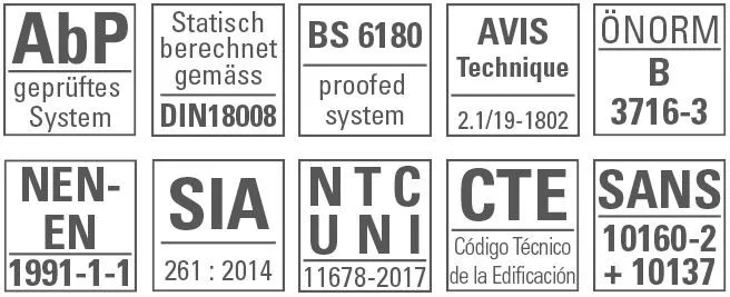 Gehen Sie auf Nummer sicher und entscheiden Sie sich für ein Ganzglasgeländer wie VetroMount®, das umfassend zertifiziert ist! Denn damit sich ein Glas-Geländersystem „geprüft“ nennen darf, muss es zahlreiche Anforderungen erfüllen, die u. a. in der „DIN 18008-4 Glas im Bauwesen - Bemessungs- und Konstruktionsregeln“ nachzulesen sind. Teil vier der Norm beschäftigt sich insbesondere mit Zusatzanforderungen an absturzsichernde Verglasungen. Sie beziehen sich zum Beispiel auf zulässige Glasarten, Ausschnitte, Bohrungen oder Lagerungsarten. Finden Sie das richtige Prüfzertifikat für Ihr Land und Ihre Einbausituation auf der nächsten Seite.